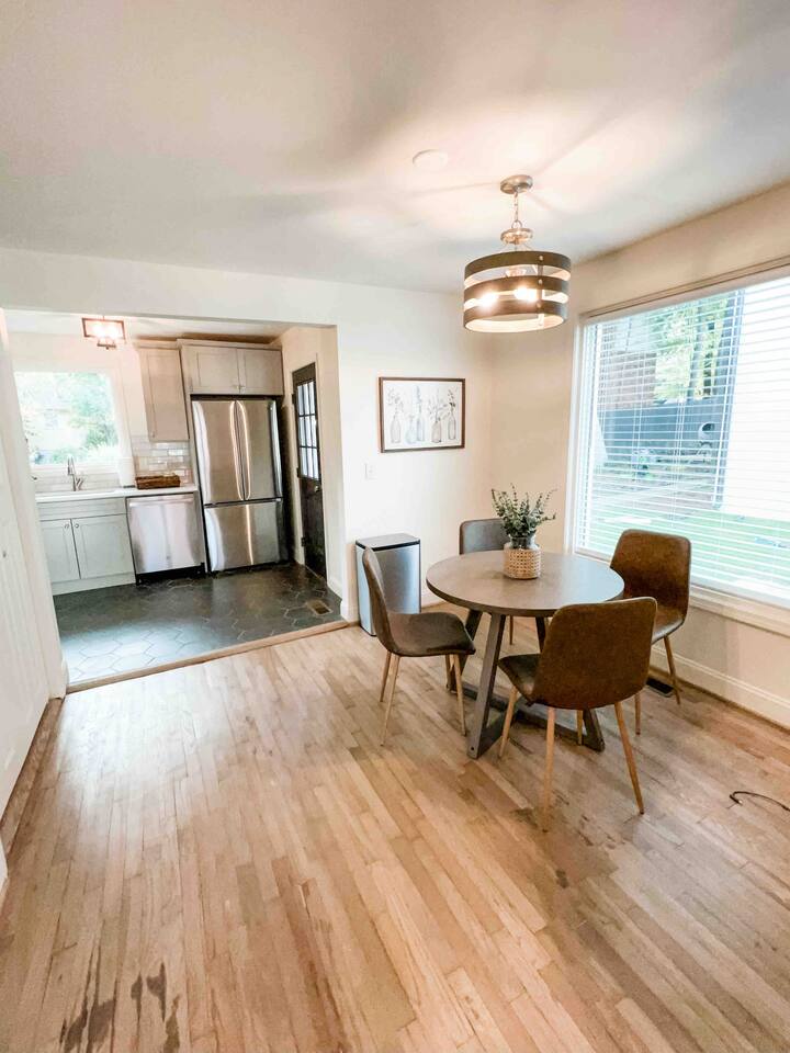 Adorable 2 bedroom, 1 and 1/2 bath townhome in the most convenient location in the heart of desirable Homewood AL. 5 minutes from downtown Birmingham, walking distance to SOHO, restaurants, shops, parks, grocery, etc. Also 5 minutes from UAB, Brookwood, and St. Vincent’s hospitals. Newly renovated with all the amenities needed for a restful stay. Patio, dining room, kitchen with all the essentials including a keurig to brew pods or drip coffee. Washer and dryer with detergent available in unit.